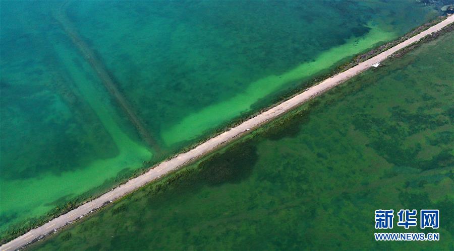 7月10日拍攝的青海湖風(fēng)光(無人機(jī)照片)。盛夏時(shí)節(jié),被譽(yù)為“中國最美湖泊”的青海湖畔景色宜人,藍(lán)天、白云、湖水與草原組成一幅壯美的畫卷。新華社記者 張宏祥 攝