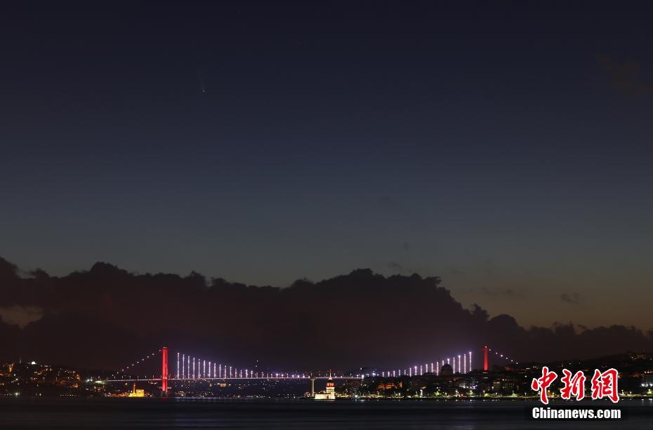 當(dāng)?shù)貢r間7月12日,土耳其伊斯坦布爾,當(dāng)?shù)匾箍罩锌捎^測到NEOWISE彗星。圖片來源:視覺中國