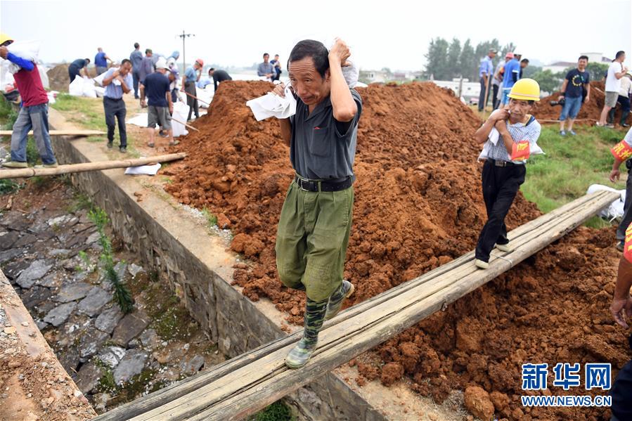 7月14日,當(dāng)?shù)卮迕裢簧习徇\(yùn)砂石袋。近日,受洪水影響,安徽省望江縣華陽鎮(zhèn)境內(nèi)的江調(diào)圩內(nèi)部道路漫水,搶險車輛無法進(jìn)入。當(dāng)?shù)胤姥床块T組織船只裝載砂石袋等防汛物資,運(yùn)往圩堤保防汛。新華社記者 劉軍喜 攝