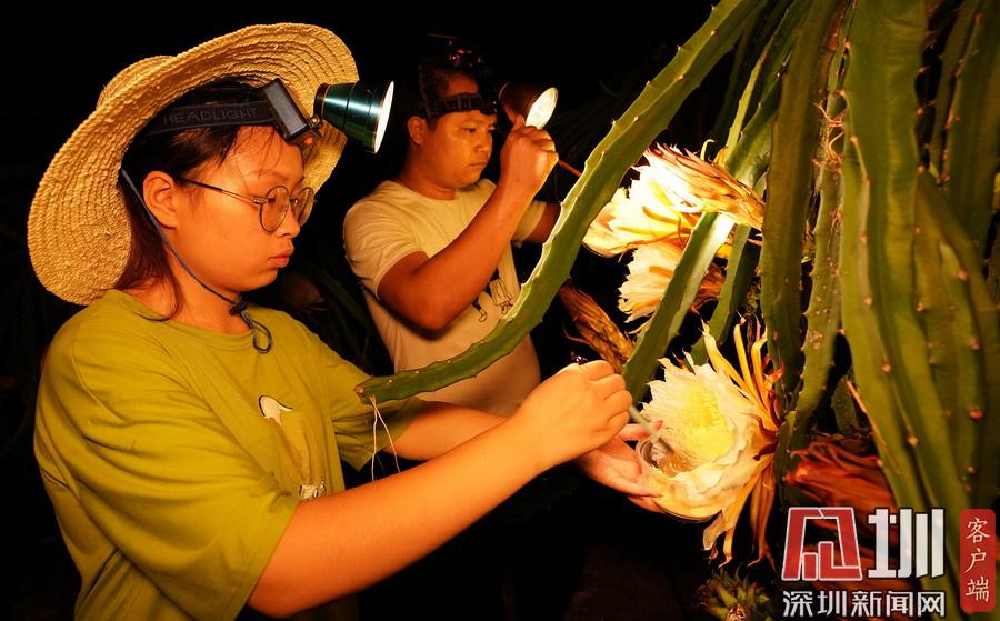 廣西融水:火龍果果農(nóng)夏夜“點花”忙