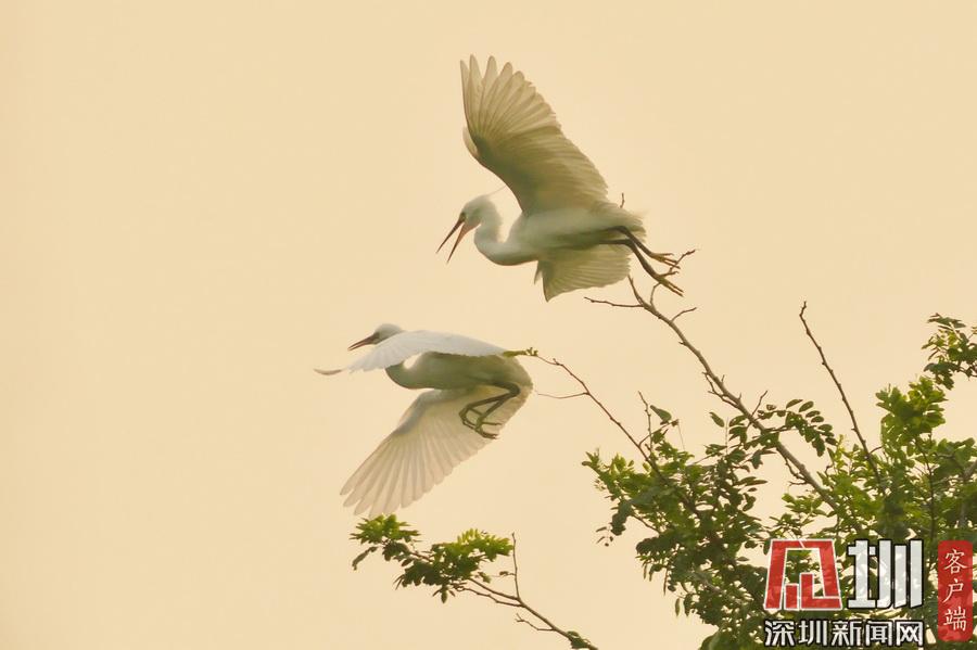山東青島“鷺舞”林間 宛如一幅寫意山水畫