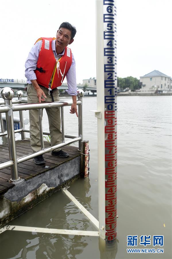 7月17日,王江涇水文站工作人員介紹京杭大運(yùn)河水位情況。浙江省嘉興市秀洲區(qū)處在杭嘉湖平原,受持續(xù)強(qiáng)降雨及上游排水影響,近期,秀洲區(qū)境內(nèi)的京杭大運(yùn)河分支航道持續(xù)保持較高水位。當(dāng)?shù)叵嚓P(guān)部門嚴(yán)陣以待,落實(shí)各項(xiàng)措施,確保安全度汛。新華社記者韓傳號(hào)攝