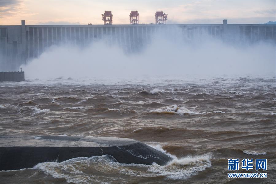 7月19日,三峽樞紐開(kāi)啟泄洪深孔泄洪。19日20時(shí),三峽水庫(kù)入庫(kù)流量4.6萬(wàn)立方米/秒,較本輪洪水的峰值6.1萬(wàn)立方米/秒下降了1.5萬(wàn)立方米/秒?!伴L(zhǎng)江2020年第2號(hào)洪水”平穩(wěn)通過(guò)三峽大壩。新華社記者肖藝九攝