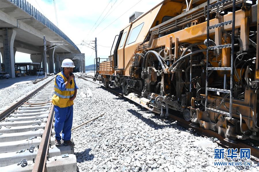 7月20日,中鐵二十四局施工人員進行平潭海峽公鐵大橋最后一根500米長軌的換鋪工作。當(dāng)日,中鐵二十四局施工人員在平潭海峽公鐵大橋進行最后一根鐵路長軌換鋪。至此,平潭海峽公鐵大橋雙線鐵路長軌全部換鋪完成。新華社記者林善傳攝