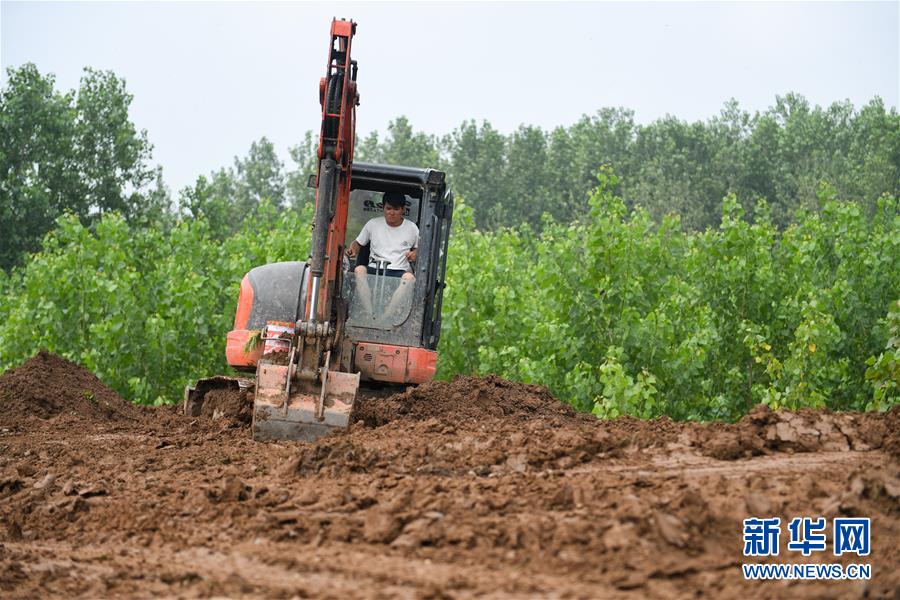 7月20日,在永固垸西線防洪大堤,工作人員處置滲漏險(xiǎn)情。新華社記者陳澤國(guó)攝