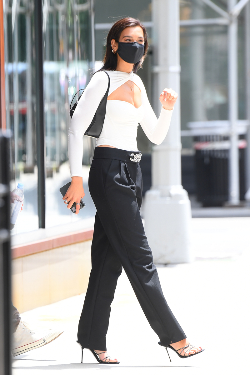 圖為杜阿-利帕白色挖空上衣+黑色西褲+涼鞋+Prada腋下包,性感撩人。