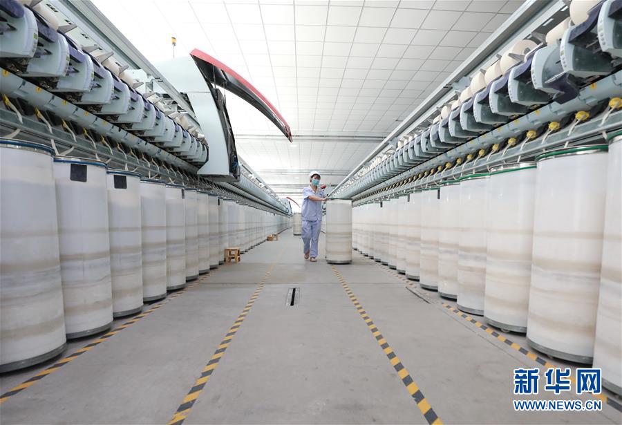 7月20日,工人在灤南縣長凝鎮(zhèn)的一家紡織廠生產(chǎn)車間里工作。近年來,河北省灤南縣大力發(fā)展村邊民營企業(yè),引導(dǎo)企業(yè)在鄉(xiāng)鎮(zhèn)村邊建廠,帶動當(dāng)?shù)?萬多名農(nóng)村群眾在村邊就近就業(yè),實現(xiàn)穩(wěn)步增收。新華社記者楊世堯攝