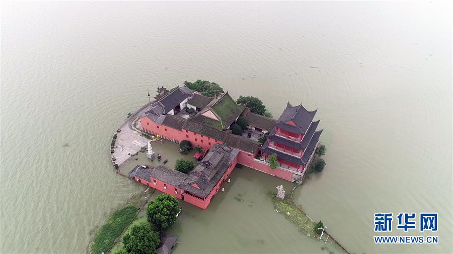 7月21日在安徽省合肥市巢湖邊拍攝的被水淹的建筑(無人機照片)。當(dāng)日10時24分,巢湖中廟站水位達到13.36米,該水位系巢湖洪水設(shè)防的百年一遇標(biāo)準。新華社記者屈彥攝