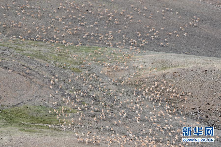 7月17日,藏羚羊群在西藏尼瑪縣榮瑪鄉(xiāng)附近悠閑吃草。2000年,西藏羌塘自然保護區(qū)晉升為國家級自然保護區(qū)。20年來,經(jīng)過西藏各級各部門的不懈努力,羌塘國家級自然保護區(qū)內(nèi)的重點保護野生動物種群數(shù)量明顯增加,其中,藏羚羊種群數(shù)量由原來的5至7萬只,恢復到目前的15萬只以上。羌塘國家級自然保護區(qū)核心地帶的西藏尼瑪縣榮瑪鄉(xiāng)附近,目前就有近6萬只藏羚羊。新華社記者覺果攝