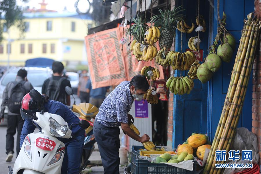 7月22日,一名男子在位于尼泊爾加德滿都的一個水果攤前整理香蕉。尼泊爾政府21日宣布,自22日零時起結(jié)束因新冠疫情而實施的全國封鎖措施。目前,尼境內(nèi)新冠疫情出現(xiàn)放緩跡象。據(jù)尼衛(wèi)生與人口部21日公布的最新數(shù)據(jù),過去24小時,全國新增確診病例150例,確診病例總數(shù)達17994例。為防范新冠疫情蔓延,尼政府從3月24日開始實施全國封鎖。新華社記者周盛平攝