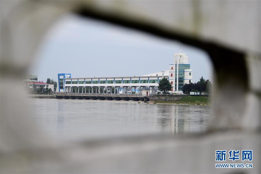這是7月22日在安徽省阜南縣拍攝的淮河王家壩閘。7月22日14時(shí),淮河王家壩水位降至28.73米,超警戒水位1.23米,低于保證水位0.57米。新華社記者張端攝