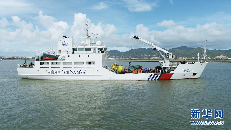 “海巡173輪”在試航(資料圖片,無人機照片)?!昂Q?73輪”7月22日正式列編交通運輸部南海航海保障中心廣州航標(biāo)處。這艘排水量2228噸的大型航標(biāo)工作船是中國交通運輸系統(tǒng)南海海區(qū)裝備最先進(jìn)的船,將用于粵港澳大灣區(qū)和南海海區(qū)水上浮標(biāo)的布設(shè)和維護(hù)。新華社發(fā)