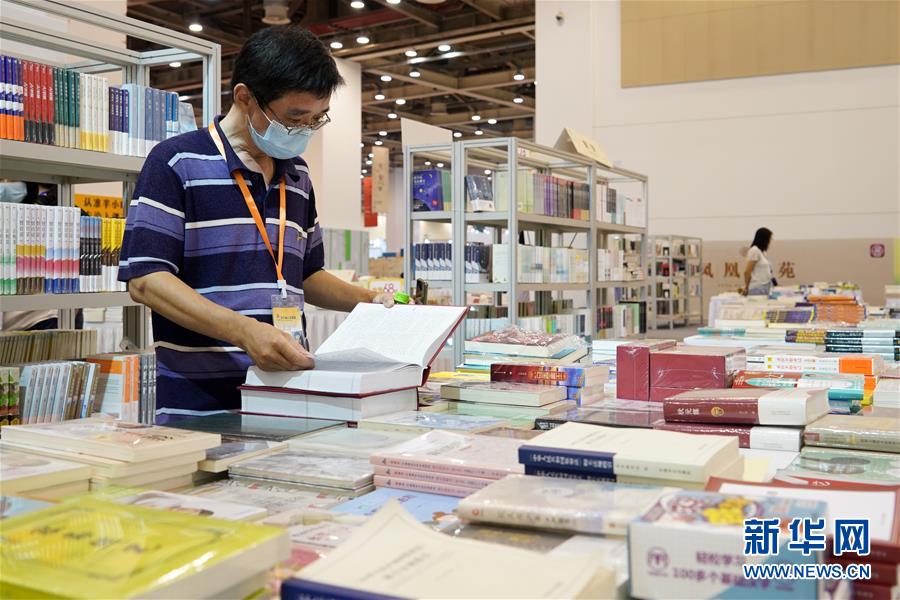7月23日,讀者在書展活動現(xiàn)場閱讀選購圖書。當日,第十屆江蘇書展在江蘇蘇州開幕,400多家出版發(fā)行單位參展,吸引眾多讀者選購圖書。新華社記者李博攝