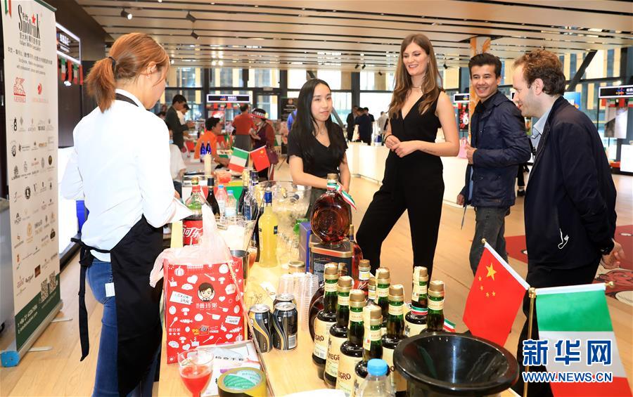 2020年5月8日,虹橋品匯國別文化節(jié)云游意大利主題展在上海虹橋進口商品展示交易中心舉行,嘉賓在一家意大利酒類企業(yè)的展臺前駐足觀看。新華社記者 方喆 攝