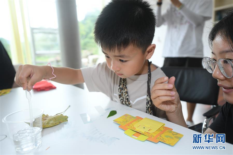 7月27日,小朋友在制作植物標(biāo)本。