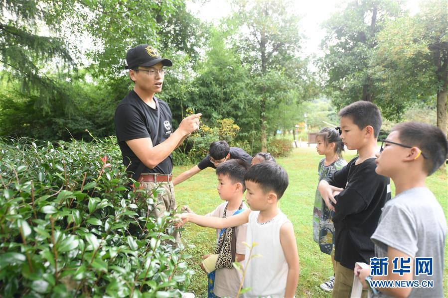7月27日,導(dǎo)師帶領(lǐng)小朋友們觀察植物。新華社記者 翁忻旸 攝