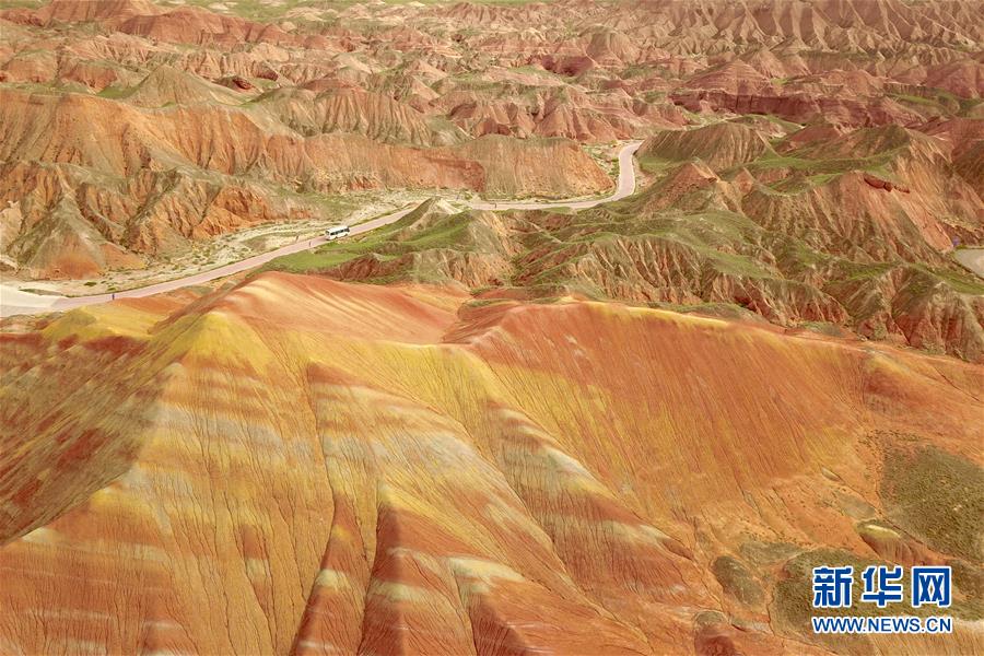這是7月26日拍攝的張掖世界地質(zhì)公園七彩丹霞景區(qū)景觀(無(wú)人機(jī)照片)。新華社記者 范培珅 攝