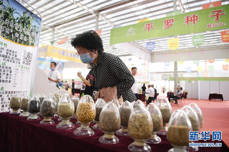 當日,第七屆寧夏種業(yè)博覽會在寧夏回族自治區(qū)石嘴山市平羅縣種子小鎮(zhèn)泰金種業(yè)產業(yè)園開幕。本屆種業(yè)博覽會有來自國內外150家種子企業(yè)的8大類4000個品種參展,為制種產業(yè)發(fā)展、農戶科學選種搭建平臺,讓小種子為鄉(xiāng)村振興帶來新動力。新華社記者 王鵬 攝