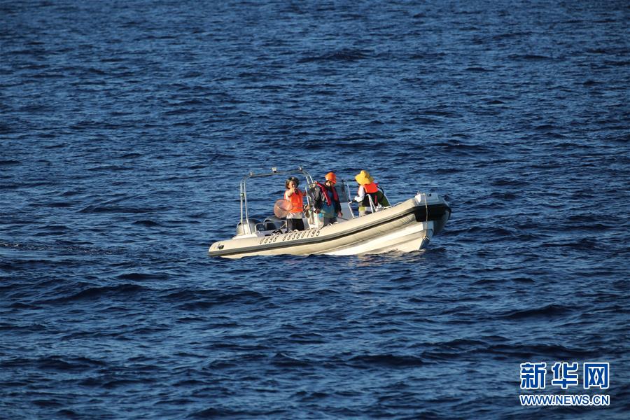 7月15日,科研人員通過小艇作業(yè)近距離觀察動物。新華社記者王自強攝