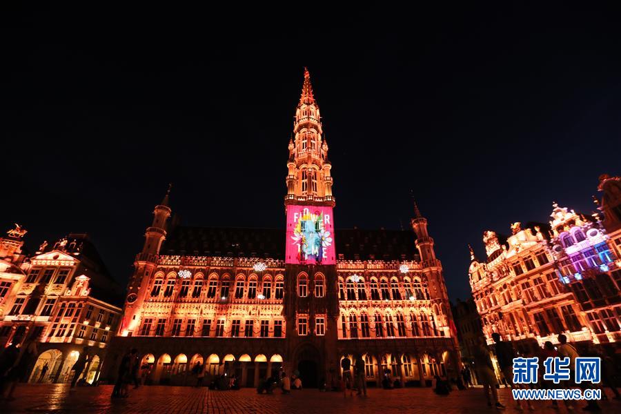 7月29日,人們在比利時(shí)布魯塞爾大廣場欣賞聲光秀,市政廳外墻上投射出“鮮花時(shí)光”的字樣。7月29日,比利時(shí)布魯塞爾大廣場舉行大型聲光秀。藝術(shù)家在市政廳等歷史建筑上投影文字和圖案,紀(jì)念這個(gè)夏天受新冠疫情影響而不能如期舉辦的文化活動(dòng)。新華社記者鄭煥松攝