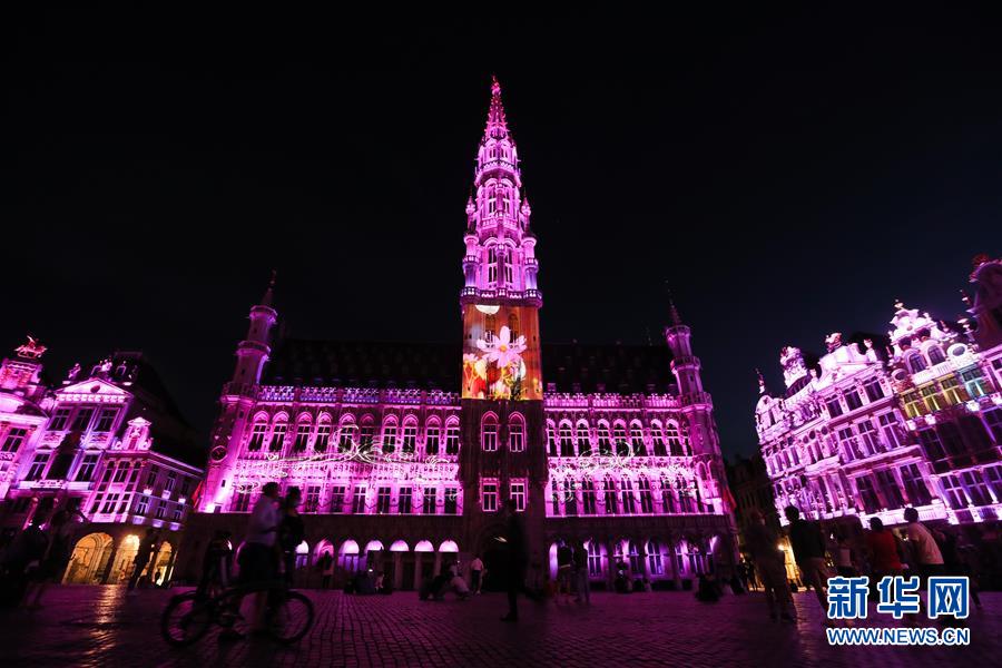 7月29日,人們在比利時(shí)布魯塞爾大廣場欣賞聲光秀,市政廳外墻上投射出鮮花地毯主題的圖案。7月29日,比利時(shí)布魯塞爾大廣場舉行大型聲光秀。藝術(shù)家在市政廳等歷史建筑上投影文字和圖案,紀(jì)念這個(gè)夏天受新冠疫情影響而不能如期舉辦的文化活動(dòng)。新華社記者鄭煥松攝
