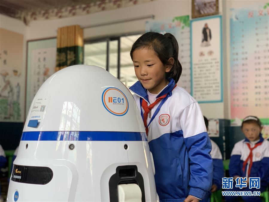 拉孜鄉(xiāng)中心小學(xué)學(xué)生在與智能機器人對話(7月29日攝)。新華社記者洛卓嘉措攝
