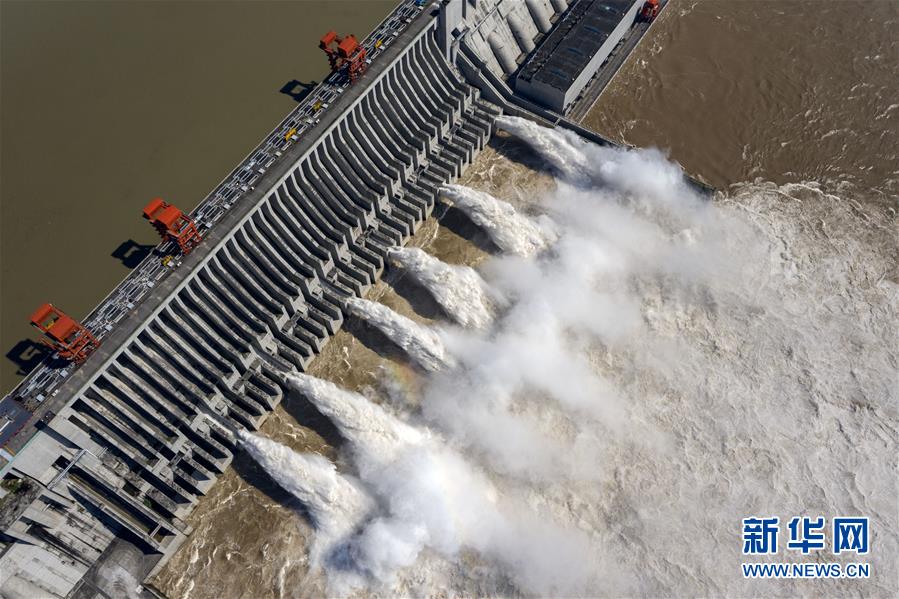 8月2日,江水通過三峽大壩下泄(無人機(jī)照片)。據(jù)水利部長江水利委員會(huì)消息,7月以來,長江流域共出現(xiàn)6次強(qiáng)降雨過程,長江上游先后發(fā)生3次編號洪水。為減輕中下游防洪壓力,包括三峽、葛洲壩在內(nèi)的長江中上游水庫群共攔洪300多億立方米。新華社記者杜華舉攝