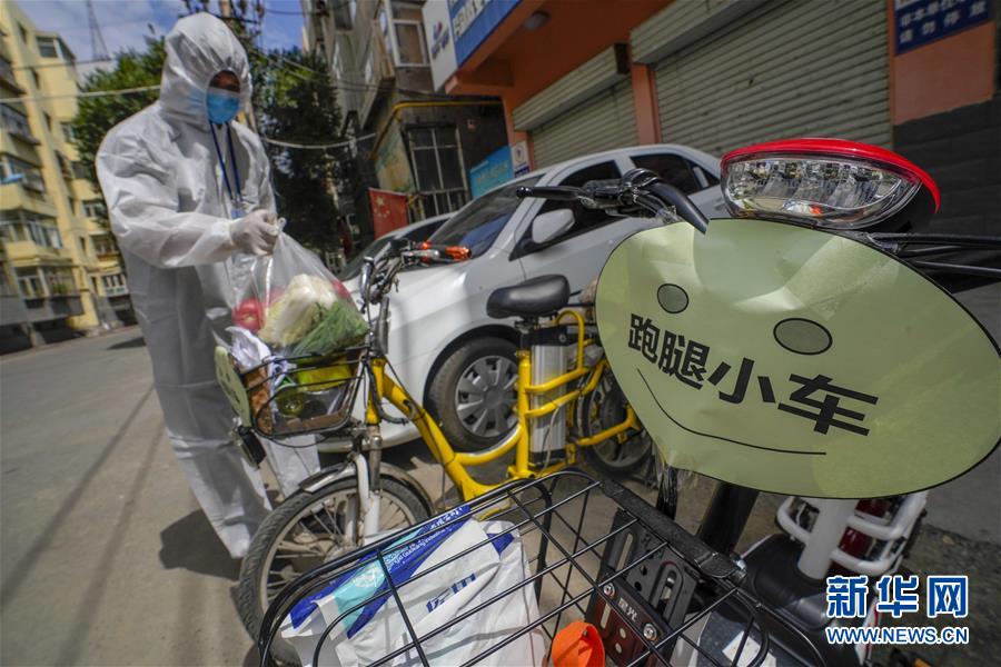8月3日,在烏魯木齊天山區(qū)西河壩前街社區(qū),社區(qū)工作人員準備騎上”跑腿小車“為居民送去生活物品。新疆烏魯木齊市天山區(qū)西河壩前街社區(qū)主次干道較多,院落分布分散。新冠肺炎疫情防控期間,社區(qū)整合現(xiàn)有資源,將暫時閑置的自行車、電動車集中起來,貼上“跑腿小車”標識,成立便民服務(wù)隊,社區(qū)工作人員通過“跑腿小車”可將居民網(wǎng)絡(luò)定制的“菜袋子”“藥盒子”快速送達,給居民帶來方便。新華社記者趙戈攝