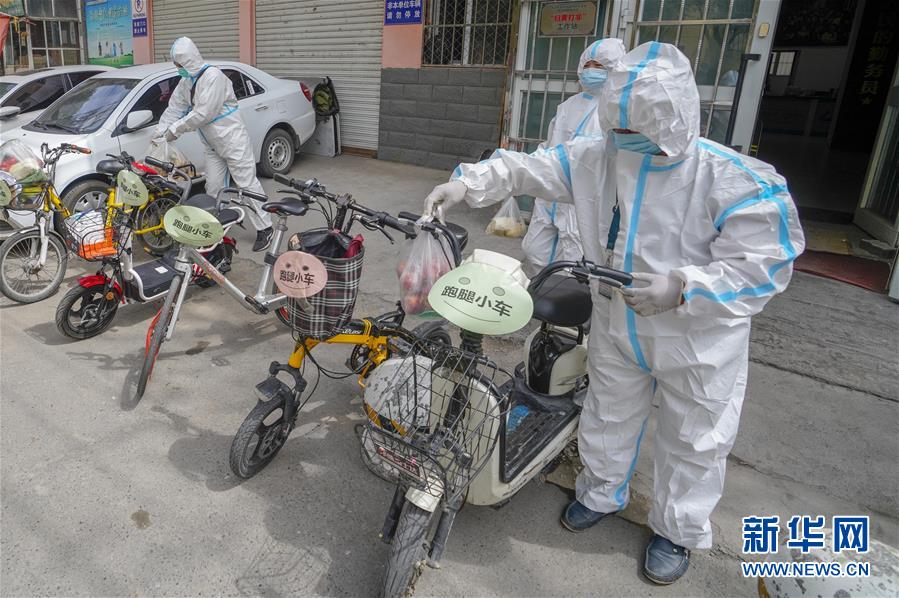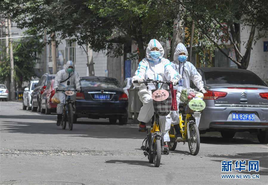 8月3日,在烏魯木齊天山區(qū)西河壩前街社區(qū),社區(qū)工作人員騎著”跑腿小車(chē)“為居民送去生活物品。新疆烏魯木齊市天山區(qū)西河壩前街社區(qū)主次干道較多,院落分布分散。新冠肺炎疫情防控期間,社區(qū)整合現(xiàn)有資源,將暫時(shí)閑置的自行車(chē)、電動(dòng)車(chē)集中起來(lái),貼上“跑腿小車(chē)”標(biāo)識(shí),成立便民服務(wù)隊(duì),社區(qū)工作人員通過(guò)“跑腿小車(chē)”可將居民網(wǎng)絡(luò)定制的“菜袋子”“藥盒子”快速送達(dá),給居民帶來(lái)方便。新華社記者趙戈攝