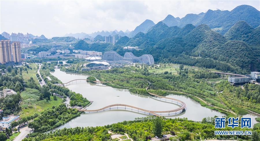 六盤水明湖國家濕地公園風(fēng)景(無人機照片,6月17日攝)。新華社記者陶亮攝