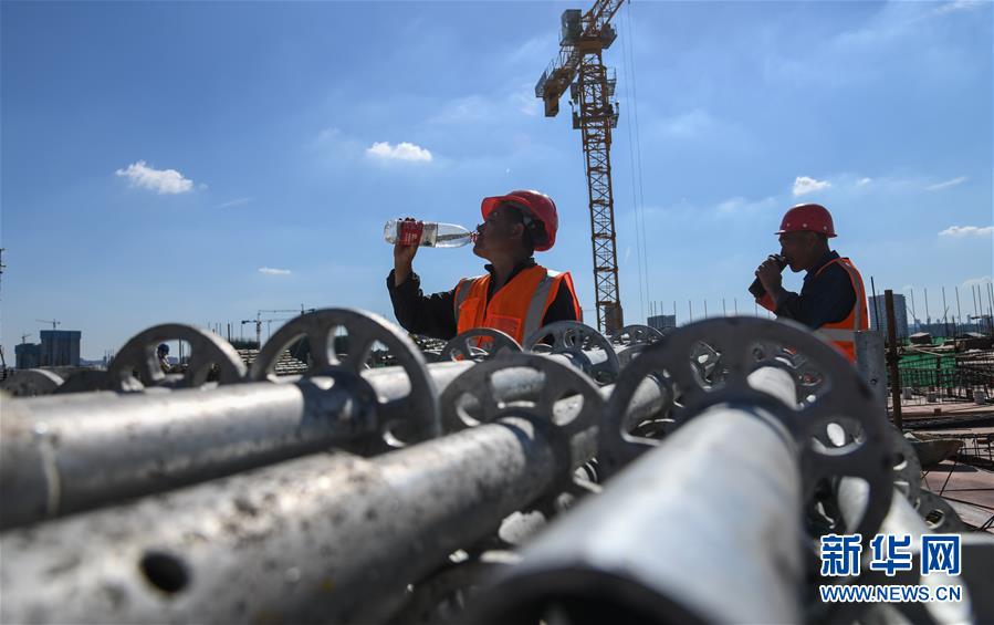 8月3日,工人在長(zhǎng)江文創(chuàng)產(chǎn)業(yè)園項(xiàng)目工地休息喝水。進(jìn)入8月,武漢迎來持續(xù)高溫天氣。在湖北廣電傳媒基地工程的工地上,中建三局總承包公司1500多名工人持續(xù)奮戰(zhàn),力保工程進(jìn)度。該工程是我國(guó)中部地區(qū)首個(gè)國(guó)家級(jí)廣播影視媒體基地,由湖北廣電傳媒大廈項(xiàng)目、長(zhǎng)江文創(chuàng)產(chǎn)業(yè)園項(xiàng)目、廣電生活配套項(xiàng)目三大板塊組成,總建設(shè)規(guī)模130萬平方米。自今年3月25日獲批正式復(fù)工以來,承建方克服困難,把因疫情影響耽誤的工期趕了回來,預(yù)計(jì)將按原計(jì)劃完成建設(shè)任務(wù)。新華社記者程敏攝