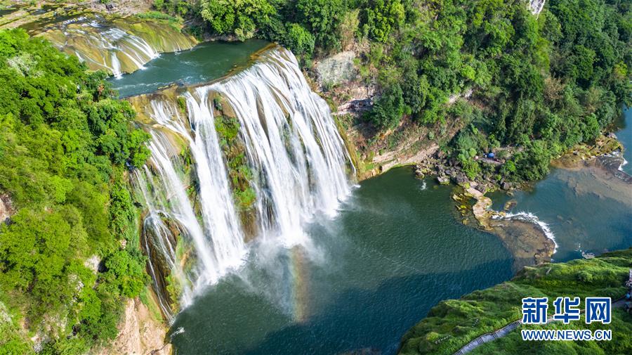 這是位于貴州省安順市的黃果樹大瀑布(5月16日攝,無人機照片)。新華社記者陶亮攝