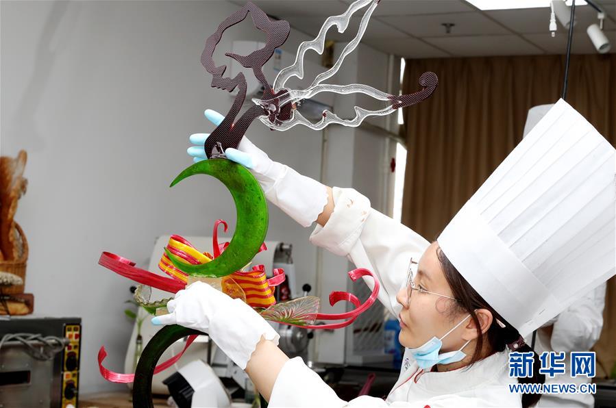 8月5日,糖藝比賽參賽選手在創(chuàng)作中。當(dāng)日,第二十一屆全國(guó)焙烤職業(yè)技能競(jìng)賽上海賽區(qū)選拔賽,在上海市現(xiàn)代食品職業(yè)技能培訓(xùn)中心舉行,來自上海、江蘇、浙江等地的近60名焙烤行業(yè)技師,在藝術(shù)面包、傳統(tǒng)糕點(diǎn)、糖藝和藝術(shù)巧克力等項(xiàng)目中進(jìn)行比拼,在充滿焙烤香氣的賽場(chǎng)上展現(xiàn)技藝。新華社記者方喆攝