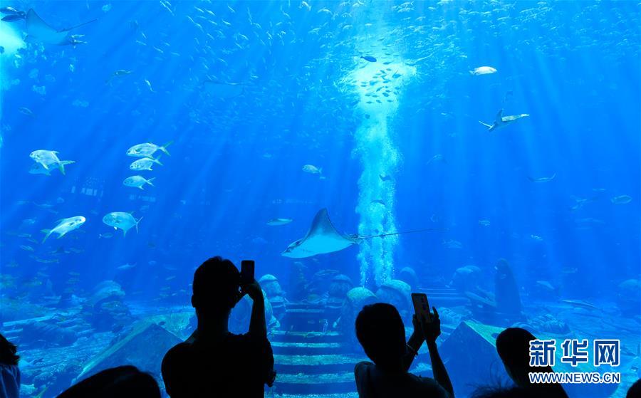 8月6日,游客在三亞亞特蘭蒂斯酒店內(nèi)的水族館游玩。新華社記者楊冠宇攝