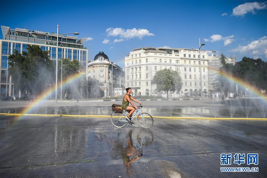 炎炎夏日里,水邊、林間、花叢……都能看到人們消暑納涼的身影。人們在享受夏日快樂的同時,也能體會到絲絲清涼。這是7月28日,一名女子騎車經(jīng)過奧地利維也納一處廣場的噴水設(shè)施。新華社記者郭晨攝