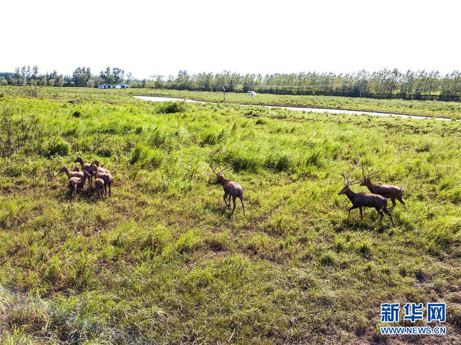 這是8月7日在東洞庭湖麋鹿和鳥類救治避難中心拍攝的麋鹿(無人機(jī)照片)。位于湖南省岳陽市的東洞庭湖麋鹿和鳥類救治避難中心成立于2016年9月,占地400余畝,中心自建成后就承擔(dān)起東洞庭湖區(qū)域全部麋鹿的救援、醫(yī)治、康復(fù)和喂養(yǎng)任務(wù)。目前該中心共有14只麋鹿正在接受救助。新華社記者李鑫攝