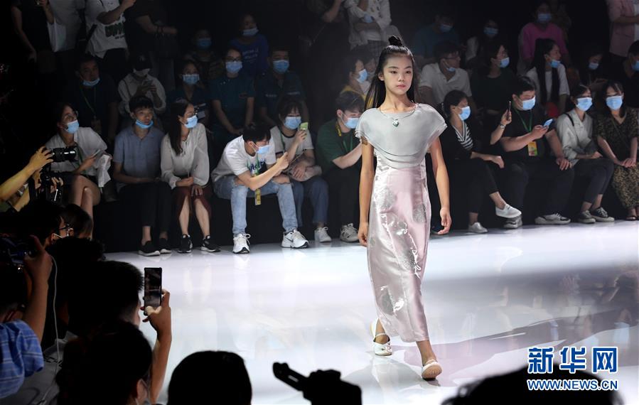 8月7日,小模特在T臺上展示童裝。當(dāng)日,2020中國(河南)國際大學(xué)生時裝周舉行童裝設(shè)計專場展示。8月5日至7日,2020中國(河南)國際大學(xué)生時裝周在河南省新密市豫發(fā)密蘭小鎮(zhèn)舉行。新華社記者朱祥攝