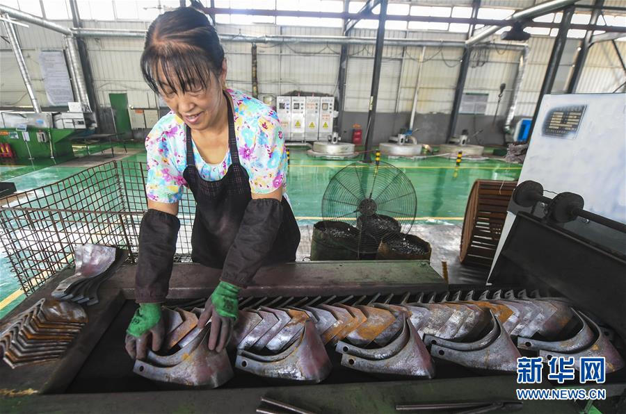 8月9日,河北大城縣南趙扶鎮(zhèn)一家旋耕機(jī)刀片生產(chǎn)企業(yè)員工在生產(chǎn)線上作業(yè)。河北省大城縣南趙扶鎮(zhèn)是該縣農(nóng)機(jī)配件行業(yè)傳統(tǒng)生產(chǎn)基地。疫情以來(lái),南趙扶鎮(zhèn)引導(dǎo)企業(yè)做好風(fēng)險(xiǎn)防范,在農(nóng)機(jī)配件行業(yè)與世界各地客商及品牌開(kāi)展方式多樣的合作,出口訂單不降反升。截至目前,該縣農(nóng)機(jī)配件行業(yè)出口總銷量達(dá)8000余萬(wàn)元,較去年同期增長(zhǎng)30%。新華社記者李曉果攝。