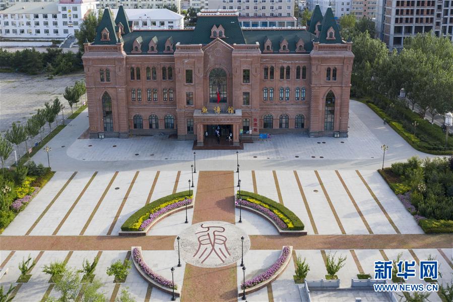 這是8月8日在撫遠市拍攝的魚文化博物館(無人機照片)。魚文化博物館主要展示了黑龍江和烏蘇里江流域的水生物和生態(tài)。新華社記者謝劍飛攝。