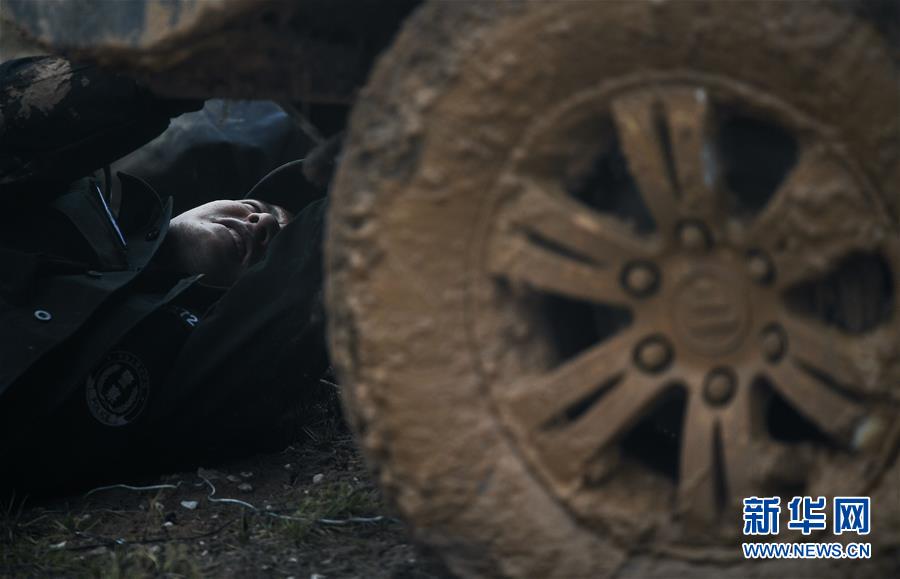 7月6日,卓乃湖保護(hù)站站長秋培扎西在可可西里地區(qū)修理車輛。新華社記者薛玉斌攝