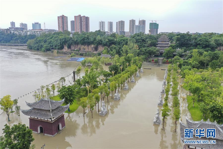 8月12日,重慶市潼南區(qū)大佛寺景區(qū),涪江洪水淹沒(méi)景區(qū)廣場(chǎng)(無(wú)人機(jī)照片)。受強(qiáng)降雨影響,涪江潼南段迎來(lái)過(guò)境洪水。截至12日下午5時(shí),涪江潼南城區(qū)段最高水位238.5米,超警戒水位0.5米,低于保證水位(240米)。此次過(guò)境洪水導(dǎo)致潼南區(qū)部分場(chǎng)鎮(zhèn)低洼地段局部進(jìn)水,約2700畝農(nóng)作物不同程度受災(zāi)。新華社記者 黃偉 攝
