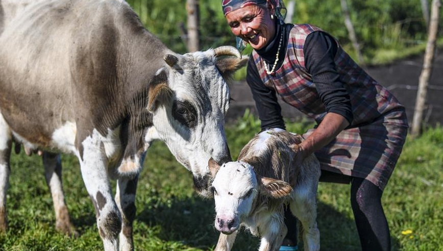 時值盛夏,新疆西天山水草豐美,夏牧場上牛羊成群。和煦的陽光普照草場,也照進(jìn)牧民心中。