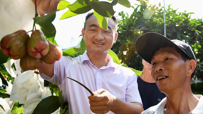 在新疆察布查爾錫伯自治縣一處生態(tài)扶貧林,當(dāng)?shù)刎毨魧⑿藜敉甑臉渲丶椅股螅?月16日攝)。