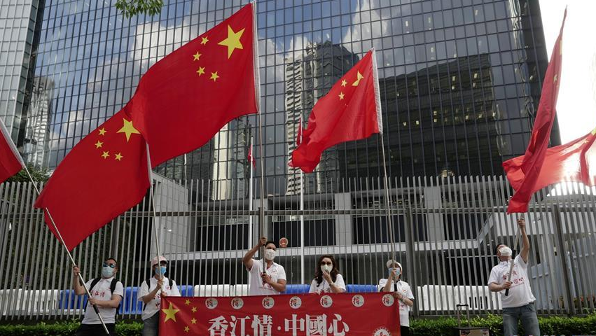 香港市民慶祝香港特區(qū)立法會(huì)三讀通過《國歌條例草案》