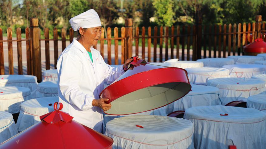 黑龍江省綏化市青岡縣蘆河鎮(zhèn)東升村貧困戶李淑琴在醬廠工作(7月21日攝)。