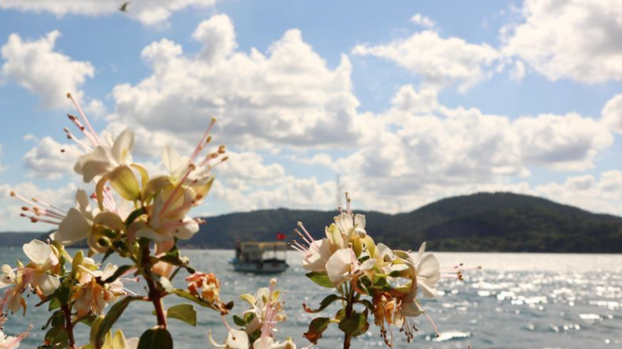 這是8月3日在土耳其伊斯坦布爾拍攝的海濱美景。
