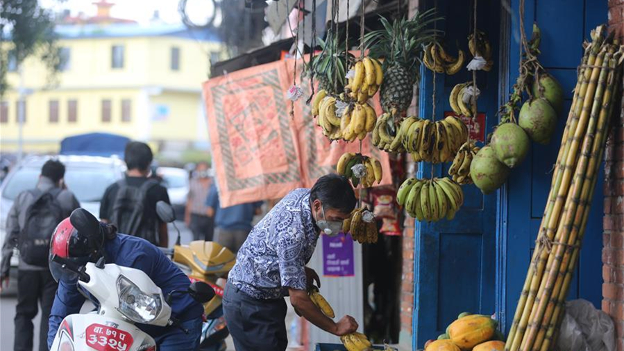 廣西恭城瑤族自治縣蓮花鎮(zhèn)紅巖村村民楊燕紅在家門口向客人推銷本地特產(chǎn)。