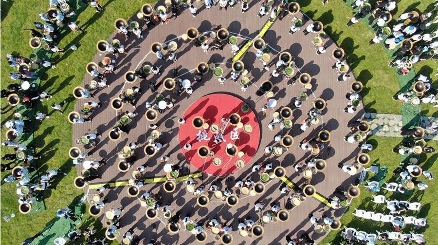 京劇愛好者在天津津灣廣場表演經(jīng)典京劇唱段。
