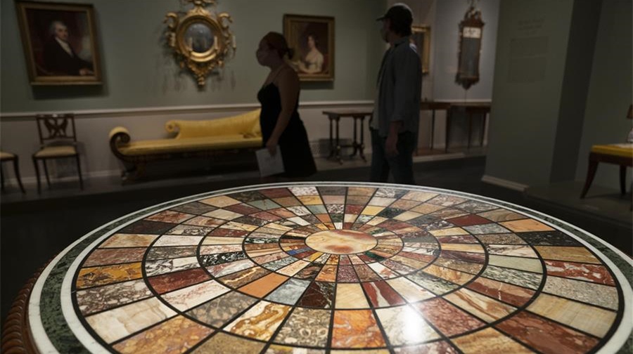 7月20日,觀眾在位于美國華盛頓的國家美術(shù)館參觀。當(dāng)日,美國國家美術(shù)館西館部分展廳開始重新對公眾開放。