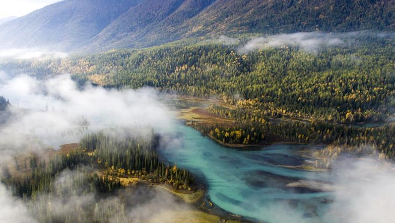 金秋時節(jié),位于新疆阿勒泰地區(qū)的喀納斯景區(qū)內的林木與喀納斯湖相互映襯,美不勝收。